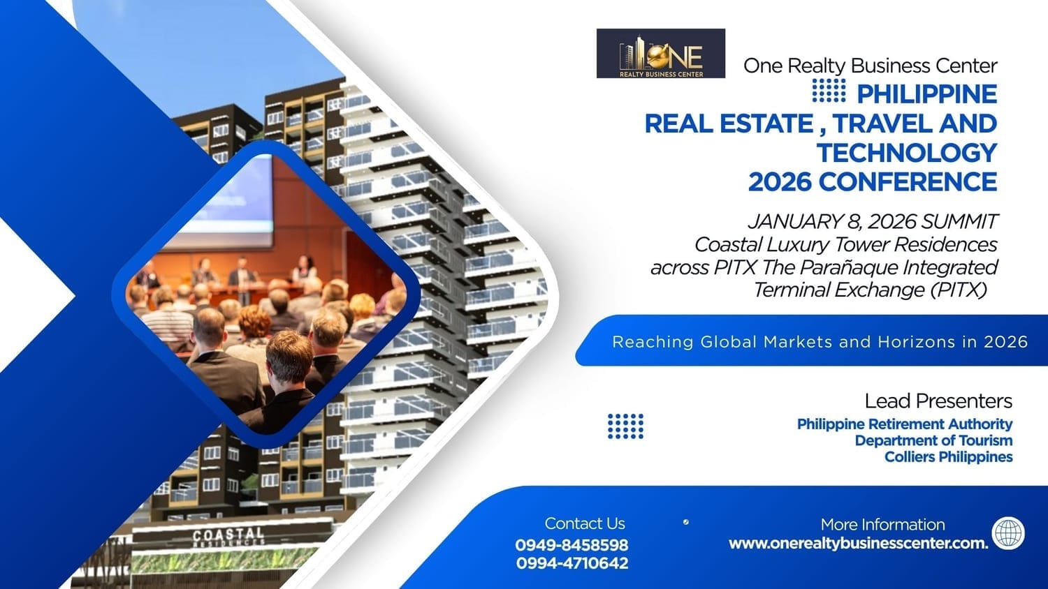 One Realty Business Center is a registered Philippine Corporation holding an office at the ground floor of Top Coastal Luxury Residences Paranaque City. It manages event production , property realty sales and leasing , a conference business center and broadcast studio. It is the producer of the 1st Philippine Real Estate, Travel and Technology Summit Conference.